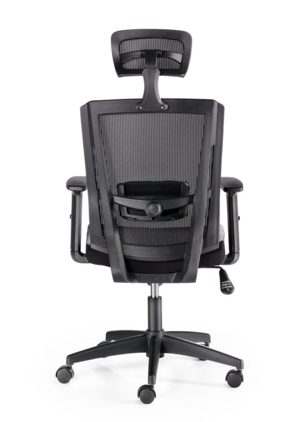 Soporte lumbar independiente acolchado con regulaciones de altura y profundidad.