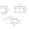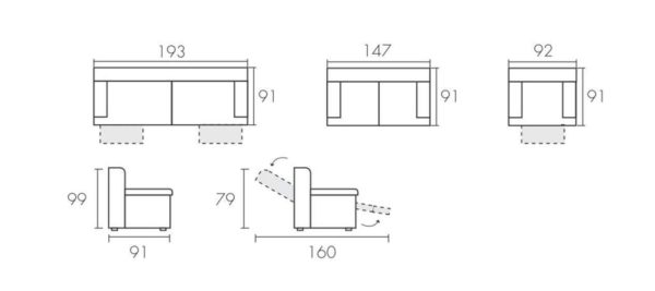 3 plazas: Ancho 193 cm | Fondo 91 cm | Alto 99 cm
